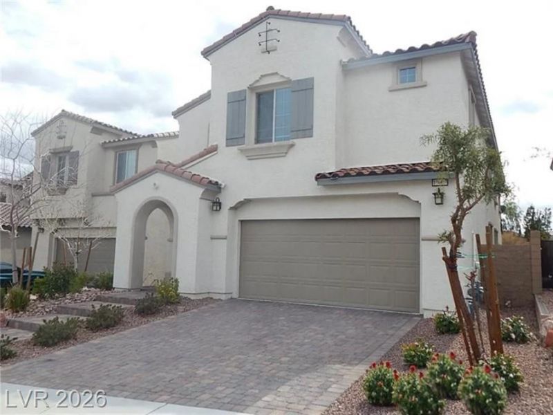 Beautiful Gated Home In Skye Canyon! Built as 4 Bedrooms. The downstairs den can just easily convert to a 4th bedroom by adding a door and free-standing closet. Open floor plan leading to a spacious entertaining kitchen! Large living room, separate dining area, den. Granite island kitchen with double ovens, pantry and lots of counter space. Upstairs boasts a 9' ceiling and an extra large loft. Separate master bedroom with a wonderful designer bathroom with double sink, walk in closet and oversize tub and shower with tile surrounds! The 2 other bedrooms shares a Jack and Jill bath. Covered patio in backyard with brick paver flooring, and easy maintenance backyard. You will love this home and the wonderful amenities that Skye Canyon has to offer!
