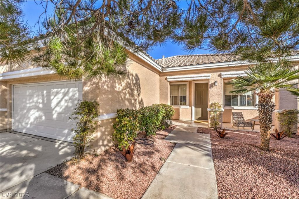 Welcome to this beautifully updated single-story home featuring an open and inviting layout designed for comfortable living and effortless entertaining. This 3-bedroom, 2-bath residence offers a spacious family room highlighted by a striking dual-sided gas fireplace, creating a warm and stylish focal point. The eat-in kitchen is thoughtfully appointed with quartz countertops, a center island with bar seating, and plenty of space for casual dining. Enjoy relaxing mornings on the covered front porch, and unwind or entertain in the backyard under the covered patio, all surrounded by nicely landscaped grounds that enhance the home's curb appeal. A 2-car garage completes this well-rounded property located in the heart of The Trails Village, one of the most ammenity-rich villages of Summerlin.