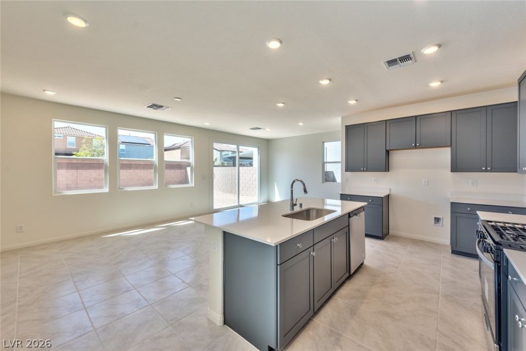 Beautifully designed two-story located in a gated community with convenient access to major shopping and dining. The open-concept floor plan features a spacious kitchen complete with recessed lighting, breakfast island, tile flooring, and a walk-in pantry?seamlessly connecting to the living areas and offering direct access to the backyard. Upstairs, you'll find 3 bedrooms and a versatile loft space, ideal for a secondary living area, office, or media room. The primary suite offers abundant natural light and a private en-suite bathroom. The primary bath is appointed with tile flooring and a walk-in shower with built-in seating. The backyard is generously sized and finished with low-maintenance desert landscaping. A well-appointed home in a desirable community located in Southwest Las Vegas.