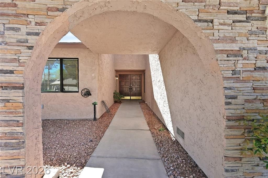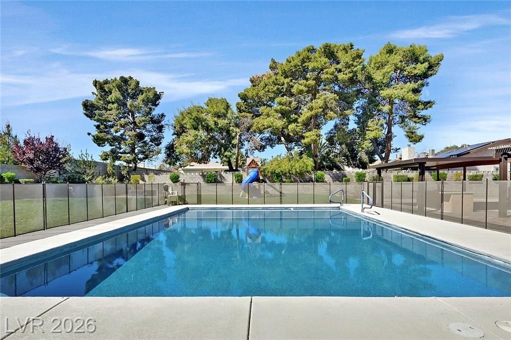 Lovely ranch style retreat offering country living with city convenience on a spacious half-acre lot. A pretty wooden double-door entry, framed by a charming arched front porch/patio, brick accents, and huge mature trees that create a peaceful, secluded setting. 4 beds, 2.5 baths, 3-car garage, gated RV parking with hookups. Enjoy a newer built fully fenced, huge sparkling pool with expansive splash deck, and oversized covered patio. Inside the open kitchen offers a large island, plenty of counter and cabinet space, a nook for additional seating or dining, formal dining area and a sunken living room with fireplace. Great sized bedrooms with open concept living that creates a natural flow. Perfectly located just minutes from the airport, the Las Vegas Strip, shopping, dining and everyday conveniences, yet tucked into a peaceful setting that feels worlds away. This is not your typical cookie-cutter home, it is full of character, charm, and unique features that make it one of a kind.
