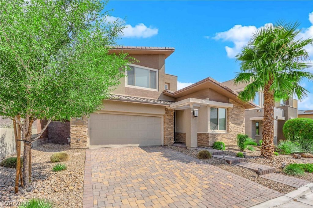 Stunning Two-Story Modern Home in Gated Community! This spacious 3 Bedroom 2.5 bath home boasts a thoughtfully designed floor plan with an abundance of natural light. The gourmet kitchen features stainless steel appliances and impressive sliding doors that seamlessly blend indoor and outdoor living. Enjoy the covered patio, with a balcony above for added charm. The master suite offers two generous walk-in closets, while the low-maintenance yard ensures effortless upkeep. Conveniently located near the scenic Summerlin Greenway walking trail. A must-see to truly appreciate!