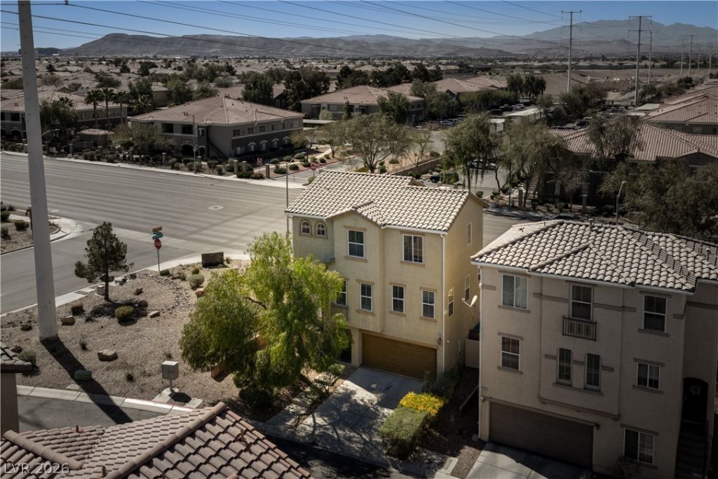 Discover this stunning, low-maintenance three-story home in the heart of Silverado Ranch. Perfectly positioned on a private corner lot, this residence has been meticulously updated to provide a fresh, contemporary feel. Enjoy a bright, airy atmosphere featuring fresh neutral paint throughout. The home is completely move-in ready with all man-made flooring?no carpet!?extending through every bedroom and living area, making it ideal for pets and effortless cleaning. The functional layout offers maximum flexibility: the ground floor includes a private bedroom and full bath with direct backyard access, while the second level serves as an open-concept living and dining heart. The third floor provides a quiet retreat for the primary suite and secondary bedrooms. Conveniently located in a quiet neighborhood just minutes from the I-15 and 215, you are perfectly placed for easy commuting and local shopping. This turn-key home is complete with a two-car garage and a low-maintenance yard.