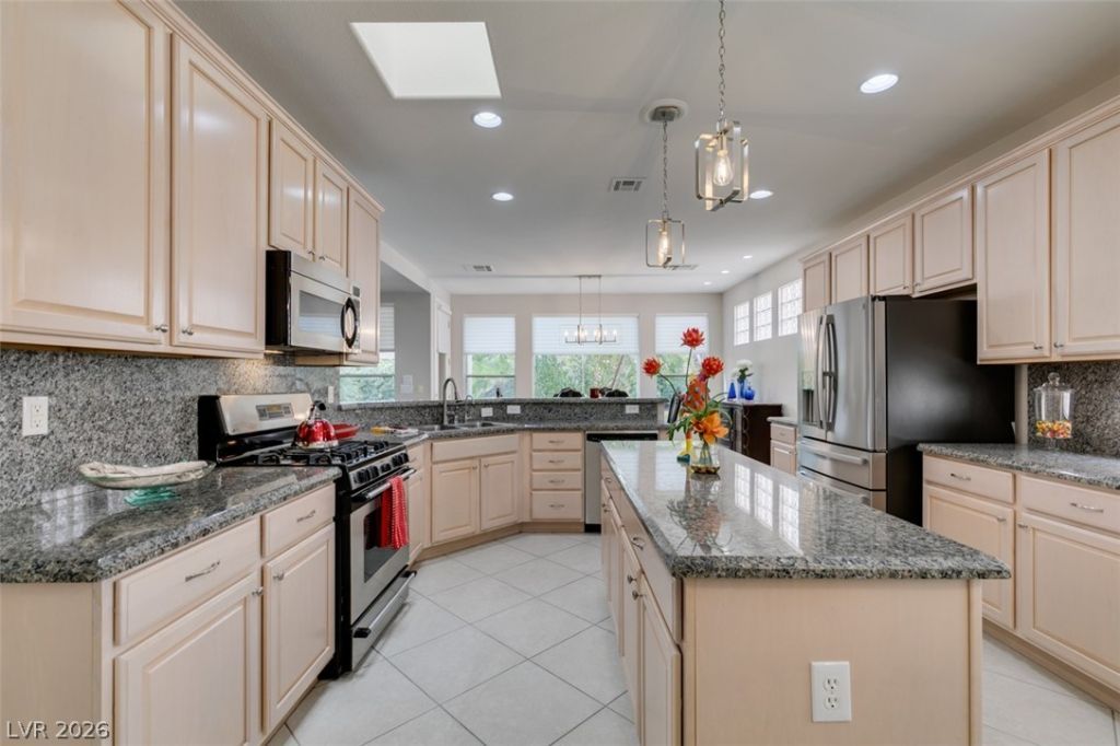 Large Cul D Sac Lot 11,326. Long Driveway. Security Gate Entry with Double Leaded Glass Doors. 2 Bdrms + 11x10 Sep Office, all in white, Built in Desk, Cabinets & Shelving. Freshly Painted interior, New: Light Fixtures& Faucets. All Tile Flooring, no Carpet. Kitchen Features Granite counters, Stainless Applncs, Center Island, Double Sinks, Skylite, Pantry, Breakfast Area, Desk area. Shutters & Ceiling Fans throughout. Lovely Formal Dining. Coffered Ceiling in Liv Rm, Surround Sound, Entertainment Cabinet. Primary Bedrm MTN View, Bay window, door to ext Patio, LG Walk in Closet, Linen Closet. Bathrm Has Sep Bathtub, 2 Sinks, Skylite Sep Laundry Rm, Washer, Dryer, Cabinets. Water Softener, Alarm. Large Covered Rear Patio, Lush Landscaping. See SIENA'S Community. Golf, Bistro, Pools, Spa's, Pickle Ball, Tennis Fitness Center. Event Calendar & MORE !! We are Featured in Best Senior Community in LAS Vegas