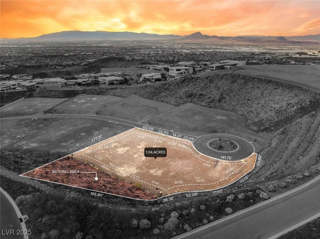 Craft your custom desert contemporary masterpiece on this oversized 1.04-acre cul-de-sac homesite in Ascaya, uniquely positioned with two natural levels that frame sweeping Strip, valley, and mountain views. Privately set and cleared, graded, and utility-ready, this rare lot offers both dramatic scale and architectural versatility, perched over 1,000 feet above Las Vegas for unmatched perspective. Residents enjoy a 23,000 sq ft clubhouse with fitness, resort-style pool, tennis, pickleball, basketball, and elegant event spaces. Outdoor living is elevated with walking and biking trails, a family park with play areas and splash pad, plus serene wellness retreats for yoga and relaxation. Combining privacy, readiness, and design integrity, this homesite invites a one-of-a-kind estate within Henderson's most prestigious guard-gated community.