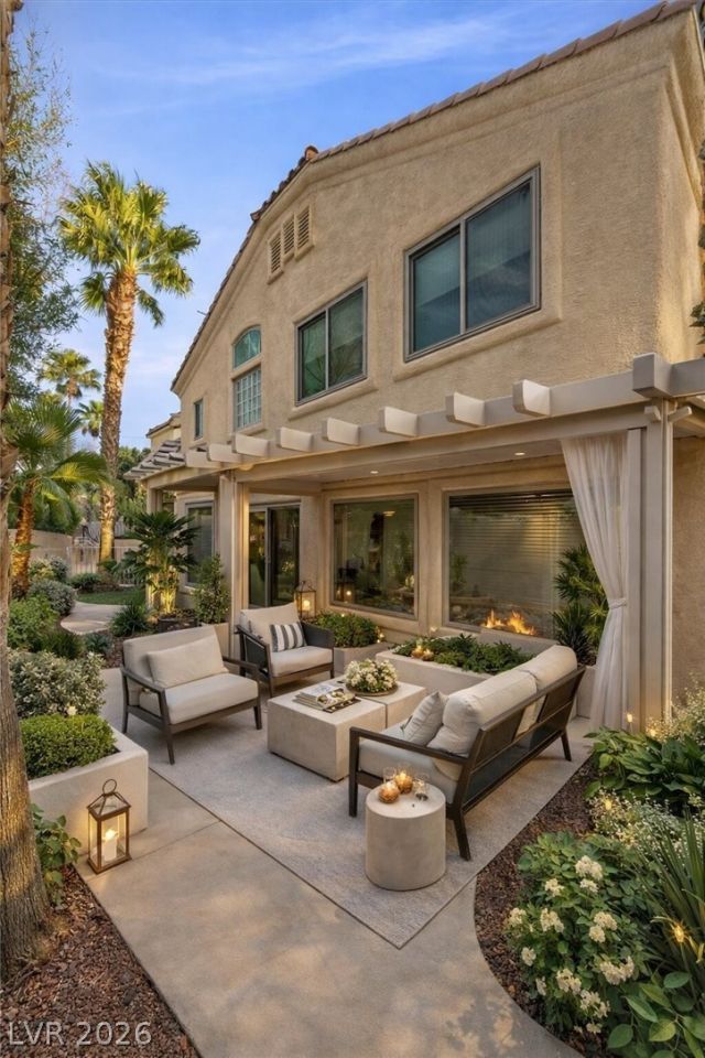 This Summerlin Gem is a rare combination of design, function, incredible upgrades, and location. Every space was curated w/ intention. From tailored dressing quarters to spa-inspired baths. The chef's kitchen anchors the home with energy-efficient stainless steel appliances, granite surfaces, and a temperature-controlled wine room just off the den/home office. Step outside to your resort-style setting with a pool, spa, built-in BBQ, gas fire pit, and covered patio. Freshly painted, this home is thoughtfully equipped with solar, dual-pane windows, plantation shutters, premium water softener, new water heater, two gas fireplaces, and a pristine 3-car garage. One of the four bedrooms downstairs has a bed and bath for multi-generational or guest use. All set within the Summerlin community, offering top-rated schools, parks, trails, tennis courts, sports courts, and seamless access to shopping, dining, and major freeways. Take advantage of the best deal in the neighborhood.