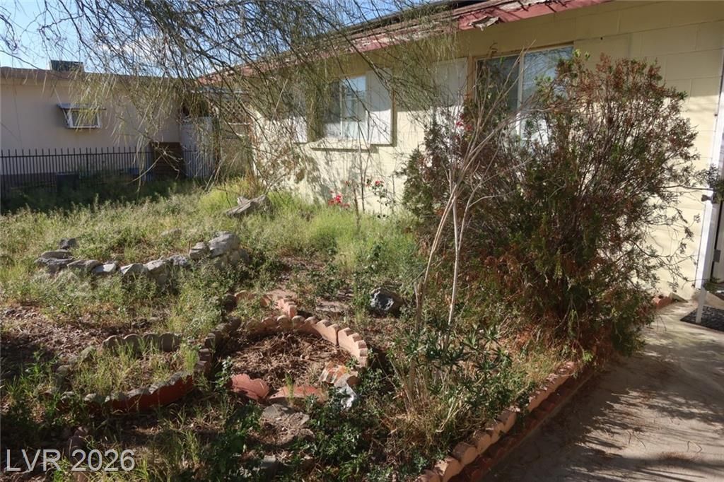 Single-story home conveniently located near the Las Vegas Strip, shopping, dining, and major freeways. This 3-bedroom, 2-bath home offers 1,134 sq ft of living space with tile and wood flooring throughout. Situated on a spacious lot with a block-fenced backyard and covered patio area behind the converted garage. The home includes a solar system, newer AC unit and a water heater. Property needs some cosmetic updates but has solid potential and is a great opportunity for buyers looking to personalize a home in a central Las Vegas location. And No HOA!