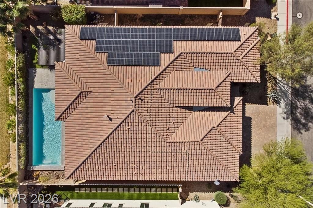 You can truly have it all with this home! Escape the Strip's frenzy, yet stay close to the action if you want. In award-winning Mountain's Edge?700+ acres of parks, trails & desert views?this rare single-story ranch-style masterpiece blends privacy, nature & modern luxury. 3,137 sq ft of upgrades: 3 beds + den (easy to make 4th bed), 2.5 baths, oversized 3-car garage. Soaring ceilings, open flow from the moment you enter. Gourmet kitchen dazzles: massive island, granite, tile backsplash, premium stainless appliances w/double oven, butler's pantry and giant walk in pantry. Primary suite: natural light, huge walk-in closet, dual sinks, custom walk-in shower + separate tub. Backyard paradise: saltwater pool w/ water fall, covered patio w/ misters, putting green, gas hookup for BBQ. FULLY PAID OFF SOLAR = extremely low energy bills, plus tankless heater, soft water & RO system. Single-story stunners this epic vanish fast. Vegas nightlife minutes away, serenity at home. Tour now?don't wait!