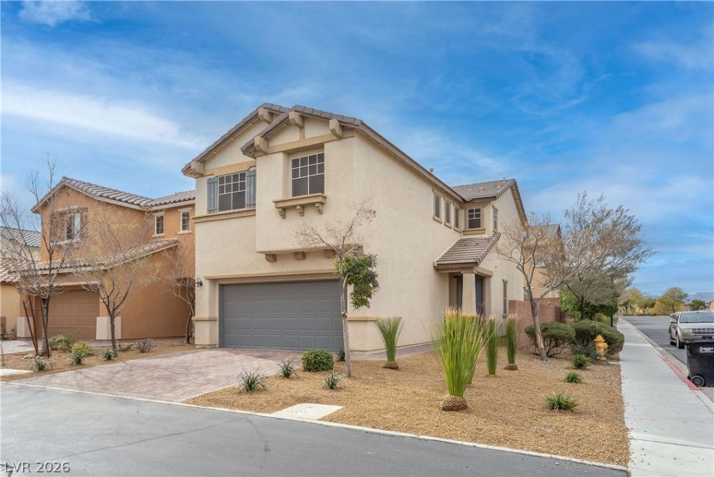 Welcome to this beautifully upgraded corner lot home located in a gated community in Henderson with resort style amenities. This 3 bedroom, 2.5 bath home is truly turn key with fresh interior paint, new carpet, freshly landscaped yard, and low maintenance turf. The open concept kitchen features granite countertops, upgraded cabinetry, stainless steel appliances, and a functional island that opens to the main living area, perfect for everyday living and entertaining. Wood laminate flooring adds warmth and style to the downstairs living space. The oversized primary suite offers a comfortable retreat, and ceiling fans are installed throughout the home for year round comfort. Enjoy a private backyard with pavers and turf for easy maintenance. Residents have access to a community pool, parks, walking trails, and clubhouse amenities. Located in a desirable gated Henderson neighborhood, this move in ready home offers comfort, convenience, and lifestyle all in one.