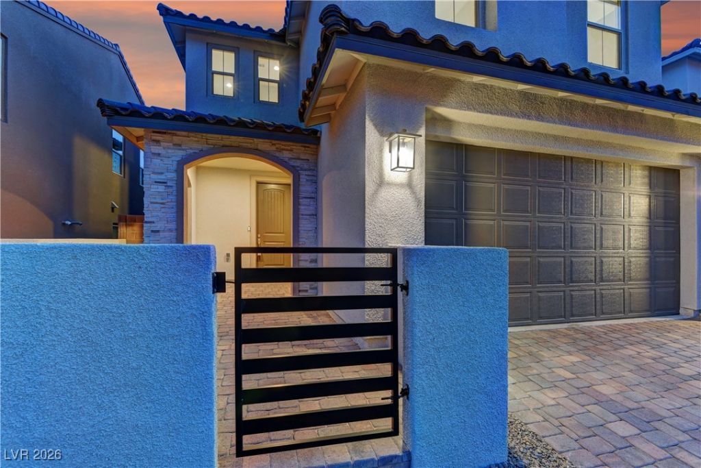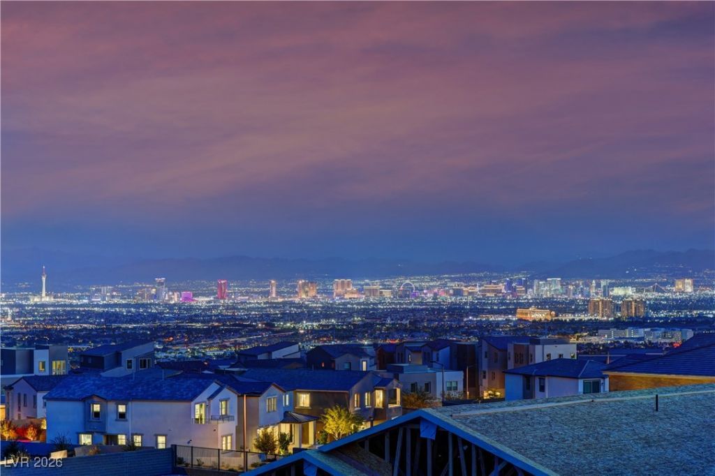 Captivating Strip & mountain views in an almost brand-new 2024 build. This highly sought-after floor plan offers over 2,400 sqft w/ 3 bedrooms plus a spacious loft, perfect for modern living. Features include a fully tiled primary bath w/ oversized walk-in shower, private balcony off the primary bedroom, & an extended covered patio w/ center-meet sliding doors for seamless indoor-outdoor living. Solar conduit, soft water loop, & BBQ stub are in place. The kitchen impresses w/ GE Profile stainless-steel appliances w/ vented hood, premier maple cabinets in a painted linen finish w/ soft-close features, upgraded quartz countertops, tile backsplash, & upgraded stainless sink & faucet. Additional highlights include upgraded bath fixtures, two-tone interior paint, modern stair rails, laundry sink w/ cabinetry, upgraded flooring throughout, & a beautifully finished backyard w/ covered paver patio plus additional paver area ideal for a firepit. Must see to fully appreciate the views & finishes