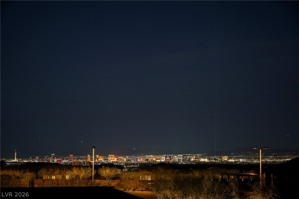Step into unparalleled elegance in this single-story Summerlin masterpiece, featuring 4 bedrooms plus a versatile den. The chef-inspired kitchen is a showstopper with a center island, breakfast bar, luxurious leathered granite countertops, stainless steel appliances, and a spacious pantry, flowing seamlessly into a grand family room complete with a media center and cozy fireplace. Thoughtful architectural details shine in the dining area and den with dramatic stone accent walls. The primary retreat is a true sanctuary, boasting a recently remodeled spa-like bathroom with dual vanities and a luxurious walk-in shower with dual shower heads, along with a generous walk-in closet. Modern sophistication graces every corner of this home. Outdoors, an entertainer's paradise awaits: a covered patio with built-in media and fireplace, sparkling swimming spa, built-in BBQ, and strip views from the wine deck?all set against a beautifully landscaped backdrop. Don't miss out, view today!
