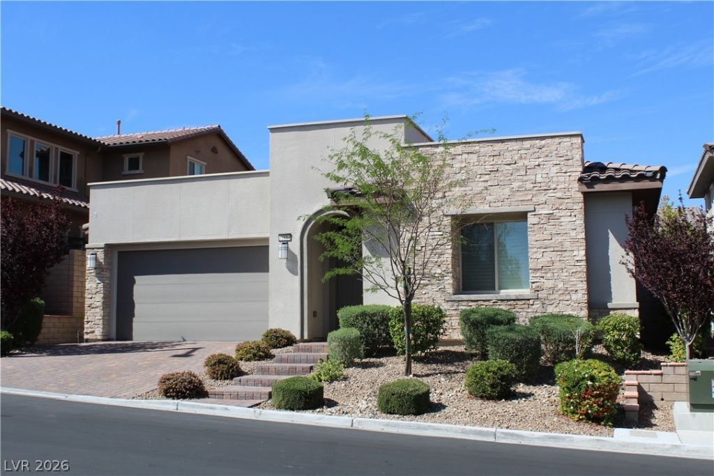 Stunning single-story in gated Savona in the Paseos of Summerlin. Thoughtfully designed open-concept layout ideal for everyday living & entertaining. The chef's kitchen features quartz countertops, an oversized island, full-height cabinetry, built-in Sub-Zero refrigerator, stainless steel appliances, beverage fridge & walk-in pantry, all flowing into sophisticated living spaces with abundant natural light, tile flooring, plantation shutters & dimmable recessed lighting. Dual sliding doors open to a private, custom tiled courtyard with a custom stacked stone fireplace, creating seamless indoor-outdoor living. A separate covered patio & two pergolas extend the outdoor space adjacent to the dining area, all set within lush, mature landscaping. The split floor plan offers privacy with a spacious primary suite featuring a spa-inspired en-suite, a 2nd bedroom adjacent to the hall bath, and a 3rd bedroom with its own en-suite. Located near top-rated schools, parks, trails, shopping & dining.