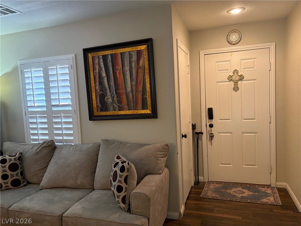 Home is in Rhodes Ranch Community, feels like living in country club but without the expenses of a country club. It is located on a quiet cul-de-sac street. Features laminated wood flooring throughout the house and tiles in all bathrooms. Good size primary bedroom. The primary bathroom has a walk-in shower. Owner has added hanging cabinets in the secondary bedrooms. There are ceiling fans in all bedrooms and the family room. Shutters in all windows.