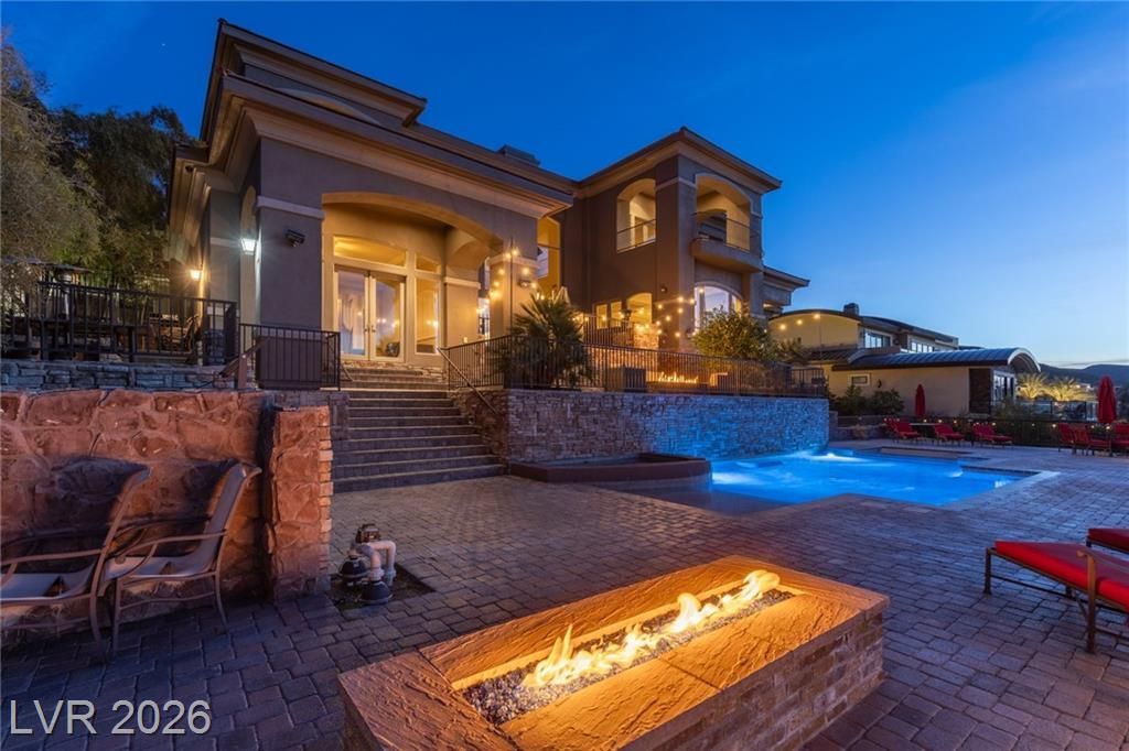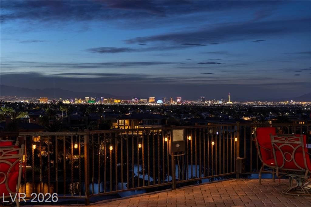 Magnificent custom home in guard/gated MacDonald Highlands with unobstructed panoramic Las Vegas Strip views! Incredible majestic views of the double fairway golf course, lake and mountains. Arguably, the best views money can buy in entire Las Vegas! This 10,000+ square foot masterpiece includes 5 en-suite bedrooms, including 2 master bedrooms ( upstairs and downstairs ), office den and 7 bathrooms. Resort style incredible backyard is perfect for entertaining and hosting Vegas style parties. Gourmet chef's kitchen with custom cabinets, top-of-the-line stainless steel Viking appliances and commercial grade hood. High ceilings, designer finishes throughout, wet bar, 320 bottle wine cellar, steam shower, jetted tubs, exercise room, media room, spacious 4 car garage, 6 car private driveway and entertainers backyard with beach entry pool, spa, built-in BBQ, fireplaces and sensational views of the entire Las Vegas valley are just a few features of this incredible custom home.