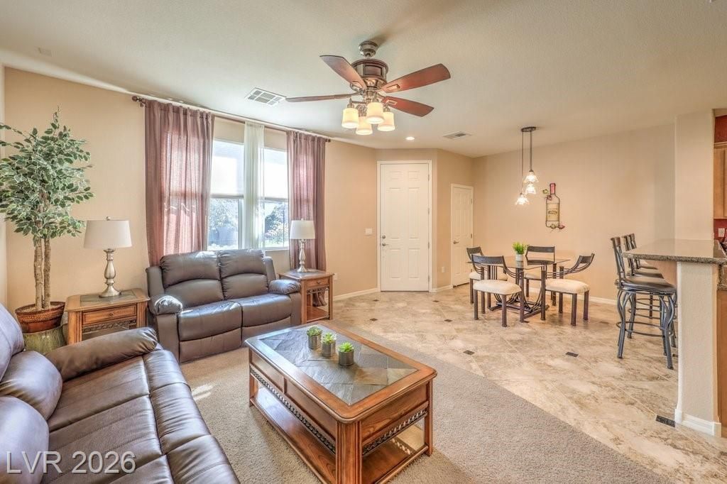 Beautiful like-new townhome offered fully furnished. West Park Villas in the Summerlin Centre Village is a lifestyle community featuring a neighborhood pool, spa, Sagemont Park, tennis, trails, and perfect location right near Downtown Summerlin and the Red Rock Resort. Enhanced curb appeal welcomes you with attractive landscapes, architectural elements, and covered porch. Open concept floor plan flows well with perfectly placed windows allowing natural light to pour in. Flexible living spaces consist of family room, loft, and den area with built-in desk. Kitchen features high-end maple cabinetry, granite counters, Maytag stainless steel appliances, pantry cabinet, and a breakfast bar. Numerous upgrades and fine finishes include stone pattern tile with granite insets, plush carpet, cellular shades, blinds, two-tone paint, LED lighting, and ceiling fans. Convenience items such as a water treatment system, recirculating hot water, storage options, and a rear load garage make life easier.
