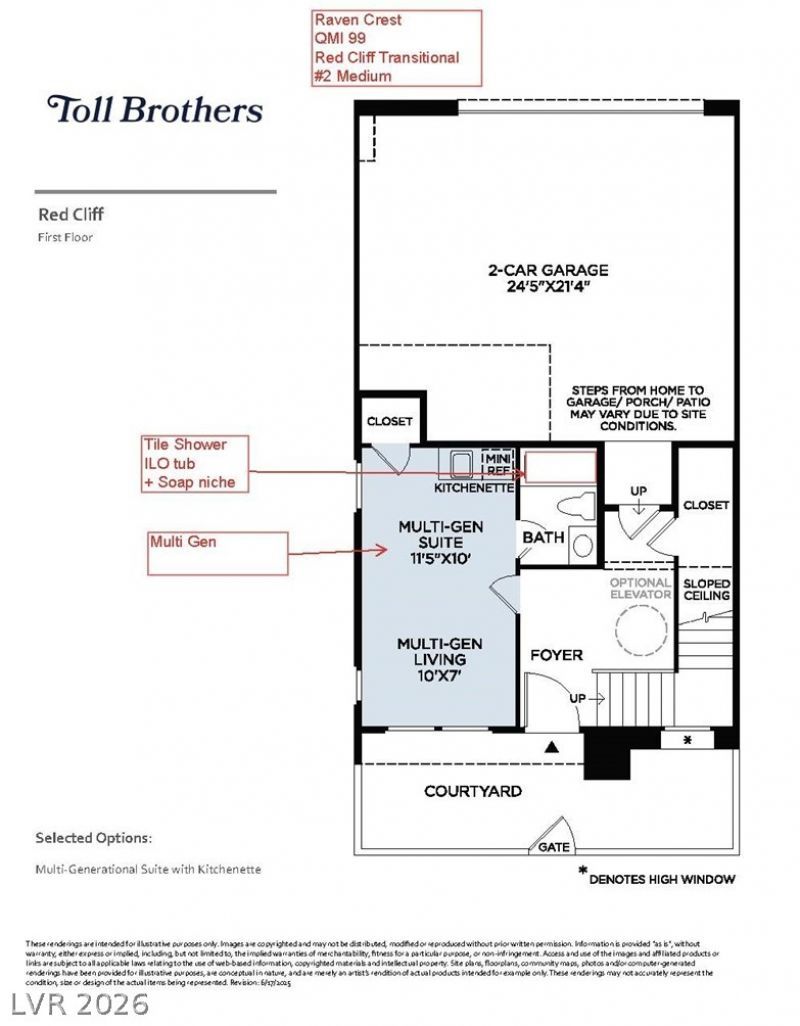 Limited-time incentives available contact the Raven Crest sales team today. The Red Cliff blends polished design with flexible living across three levels. A welcoming foyer opens to a private first floor bedroom suite ideal for guests or multigenerational living plus a dedicated workspace. Upstairs, the main living area features soaring 11 ft ceilings and an open concept great room flowing into a casual dining area with access to a spacious covered balcony. The well-equipped kitchen includes a large island, pantry, and abundant cabinetry. Ceiling heights range from 9 to 11 ft throughout. On the third floor, the primary suite offers a walk-in closet and spa like bath with dual sinks, a luxe shower, and private water closet. Two secondary bedrooms share a full bath, and an airy loft adds versatility. Includes powder room, bedroom level laundry, ample storage, and close proximity to the community pool.