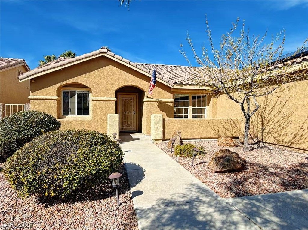 Stunning Single Story Home in the heart of Summerlin! This 3 bed, 2 bath home offers comfort, privacy, and a highly desirable location. The open concept floor plan features a large kitchen with stainless steel appliances, perfect for everyday living and entertaining. The spacious primary suite is thoughtfully separated from the other two bedrooms for added privacy and includes a sliding glass door with direct access to the backyard. Step outside to enjoy an oversized backyard surrounded by mature trees, creating a peaceful and private outdoor space to relax or host gatherings. Located within walking distance to Palo Verde High School and just minutes from Downtown Summerlin, parks, walking trails, Red Rock Casino, and easy access to the 215 freeway.The home also features solar panels to help reduce energy costs. Recent updates and more. Schedule a viewing today!