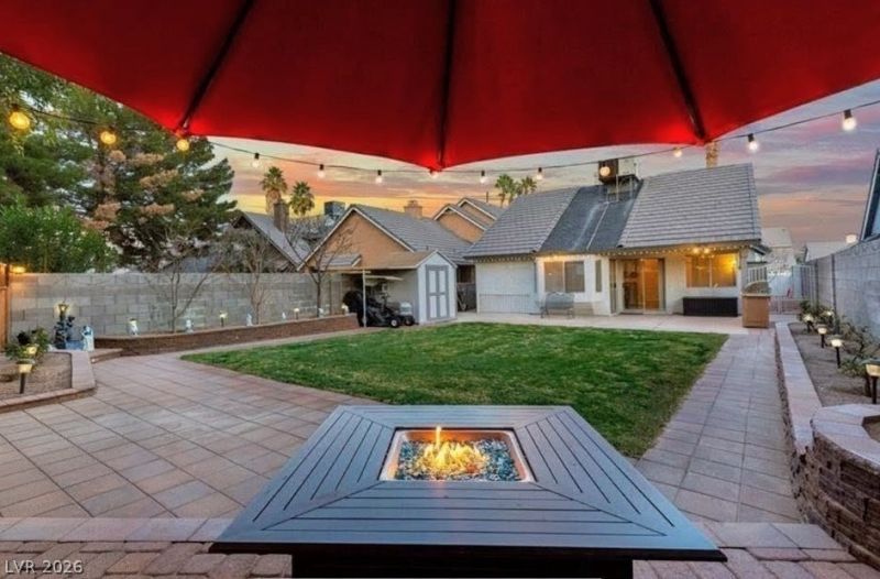 Take advantage of this opportunity in desirable Green Valley?no HOA! This well-maintained single-story home offers 3 bedrooms, 2 baths, and thoughtful updates including a new HVAC system, water heater, and dishwasher. The property features a 2-car garage, paver driveway with boat parking, desert landscaping, and a productive apricot tree. A gated front entry adds privacy. Inside, enjoy vaulted ceilings, wood-look flooring, and a two-way fireplace. The kitchen includes granite counters, white cabinetry with crown molding, built-in appliances, and an island. The primary suite offers backyard access, dual sinks, and a walk-in closet. The backyard is designed for entertaining with real grass, a stone patio, gas fire pit, BBQ island, solar lighting, rose bushes, and multiple fruit trees. Includes a large shed with A/C, pet access and exterior electrical hookups, and a gated dog run. Conveniently located near parks, recreation, shopping, and dining.