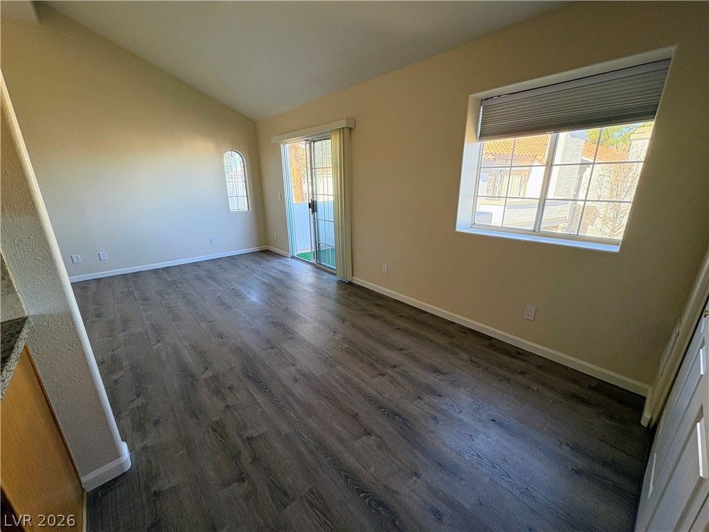 Perfectly positioned for an active lifestyle! You're just minutes away from shopping, including a brand-new Smith's Marketplace, dining choices close to your doorstep, paved trails of Arroyo Grande Sports Complex Park and Pittman Wash Trail. Convenience and comfort, high ceilings, ample windows and nice sized patio create an airy, open feel in this inviting upstairs 1-bedroom condo. Enjoy peace of mind with a newer water heater, new plumbing fixtures throughout, and Wyze doorbell camera for a maintenance-free lifestyle. The heart of the home is a functional kitchen equipped with a 5-burner stove, double-door refrigerator, and ample cabinet storage. The primary bedroom is complete with a walk-in closet and two individual sink vanities. Park in a detached one-car garage with space for extra storage.