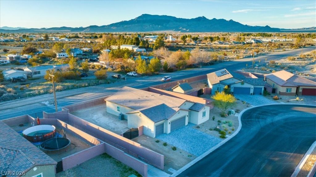 RV Parking & Mountain Views! Welcome to this beautifully maintained single-story home in Pahrump, offering the perfect blend of space, functionality, and scenic surroundings! This property features a 12ft side access gate, complete with 50amp service, sewer cleanout, and water hookup. Also has reverse osmosis water filtration, water softener and a 13 month home warranty. Sitting on almost a 1/4 acre, you'll love the extra room, privacy, and flexibility this lot provides. Inside, enjoy: Stylish ceramic tile flooring in kitchen, baths & laundry rooms. A modern kitchen with stainless steel appliances. Ceiling fans throughout for added comfort; smart home features for convenience and efficiency. Take in beautiful mountain views right from your property?perfect for relaxing evenings or entertaining guests. Located in a community with a Landscaping Maintenance Association (LMA)?giving you the benefits of maintained common areas without some of the restrictions of a traditional HOA.