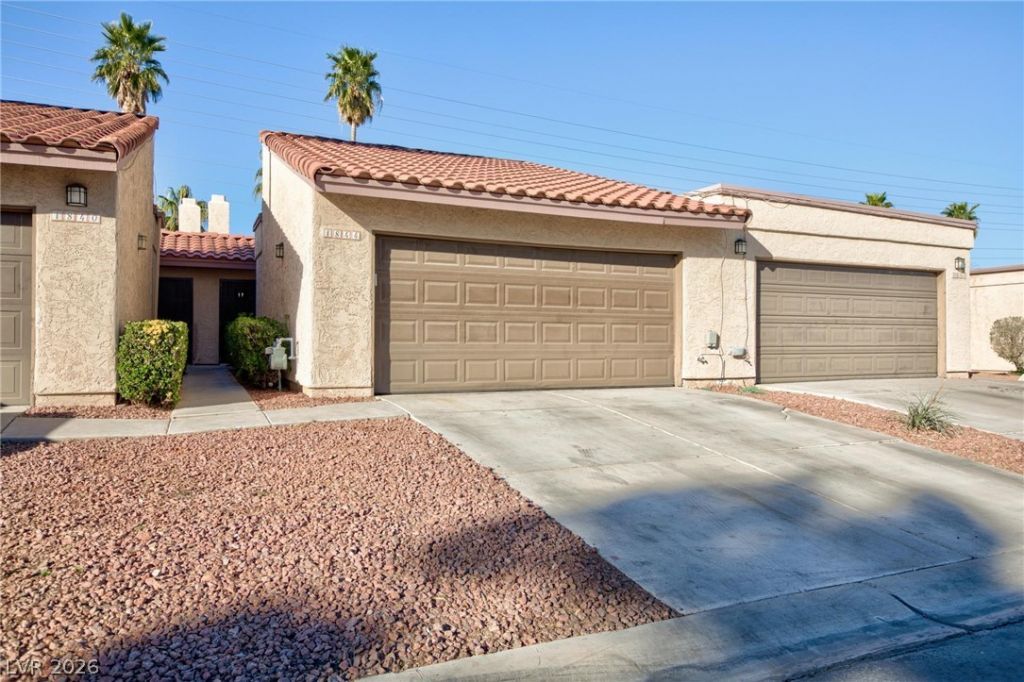 Recently remodeled contemporary townhome perfect for even the most discerning buyers. Features 2 bedrooms, 2 bathrooms, and a 2-car attached garage. Enjoy an open floor plan with raised ceilings and a spacious living room with a wood-burning fireplace. The kitchen boasts custom white cabinets with sleek handles, granite countertops, and high-end stainless steel appliances. The primary bedroom offers private tiled courtyards and is separated from the guest bedroom by garage access. Community amenities include a sparkling pool and spa, pickleball court, and walking paths. Conveniently located near freeways, shopping centers, and UNLV.