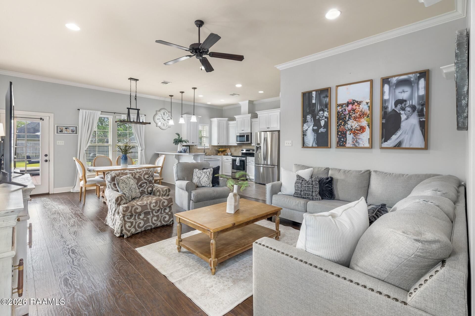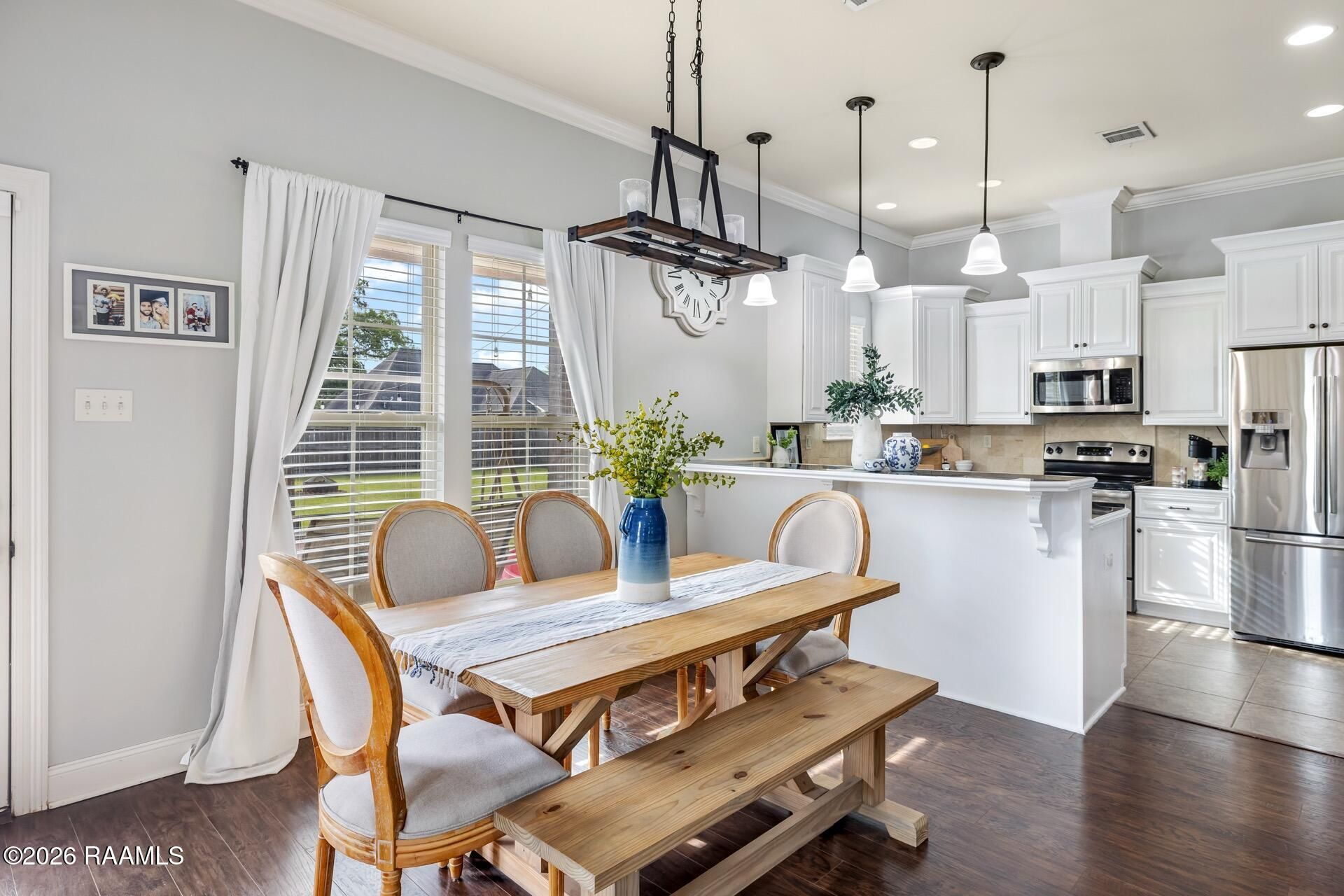 This adorable, well maintained home with a huge backyard just waiting for its new owners! This home is a 3/2 with 1541 sq feet of living area in an open floor plan. It showcases updated crisp white cabinets, granite countertops and a spacious pantry. The dining/breakfast area has backyard access, featuring windows and abundant natural light. As you enter the home, wood floors and crown molding grace the living room, which features updated paint and lots of room for your favorite built-ins and furniture. Possibilities are endless! One side of the floor plan concludes with two linen closets and a privacy suite, which includes a walk-in closet and a spa-like bath featuring double vanities, a soaker garden tub, and a separate shower. The split also displays two more bedrooms and a fully updated second bathroom. A two-car garage with a storage closet, floored attic space and a deck in the backyard for Sunday barbecues or afternoon wine while watching the sunset finishes off this jewel of a home! Did I mention the front curb appeal? Come and check out this haven in the quiet, peaceful development of Summerfield. You wont be sorry! Updates include new paint throughout, designer wallpaper in one bedroom, updated kitchen cabinets, new plumbing fixtures, and new lighting in the dining room and hallway. The second bathroom also got a facelift along with a deck in the backyard.