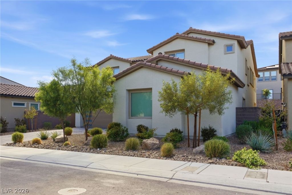 This impressive two-story home offers over 3,901 square feet of thoughtfully designed living space, featuring 5 bedrooms and 5 bathrooms. Inside to find a formal dining room and a spacious casual living area with soaring ceilings, creating an open and inviting atmosphere. The kitchen is a true centerpiece, complete with a large central island, quartz countertops, a pantry, and a cozy breakfast nook?perfect for both everyday living and entertaining. The main level also includes a dedicated office, ideal for working from home or a private study space. Upstairs and beyond, the home offers a private primary suite retreat featuring a separate sitting area and dual walk-in closets, providing both comfort and functionality. Enjoy the beautifully landscaped backyard, complete with a putting green?perfect for relaxing or entertaining guests. Conveniently located near I-15 and just minutes from Downtown Summerlin, you'll have easy access to premier shopping, dining, and entertainment.