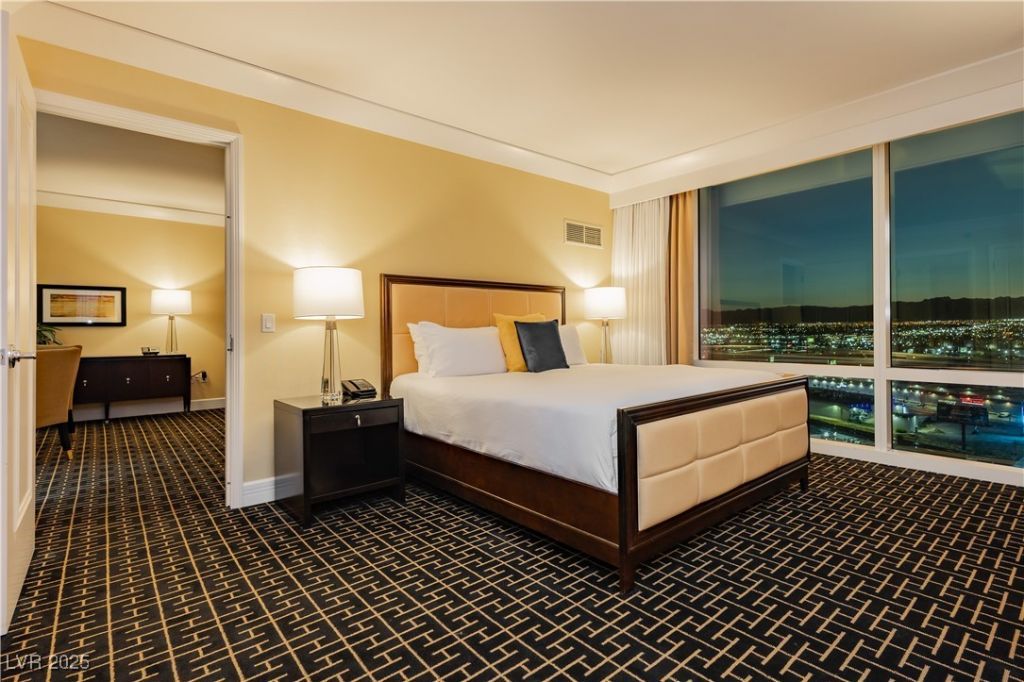 Step into elevated Las Vegas living with this exceptional One Bedroom Corner condominium, offering 974 square feet of thoughtfully designed luxury. Floor-to-ceiling windows frame expansive, multi-directional views of the vibrant Downtown skyline and the surrounding mountains. The spa-inspired bathroom invites relaxation with its six-foot soaking tub perfectly positioned to capture stunning vistas. A sleek & modern kitchen?complete with a full-size Sub-Zero refrigerator?sets the stage for crafting memorable meals. At day's end, retreat to the comfort of a plush king-sized bed for a truly restful escape. Ideally suited for those who value elegance and modern sophistication, this residence stands as a distinctive sanctuary in the heart of Las Vegas. Claim the opportunity to make this extraordinary home your own.