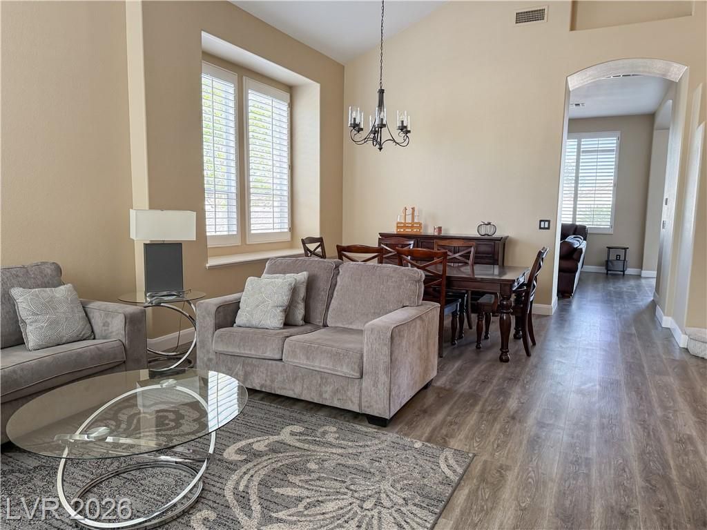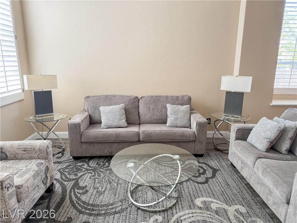 Gorgeous furnished home in Summerlin, guard-gated community. Updated throughout, elegant double entry doors open to formal living & dining w/soaring vaulted ceilings. Expansive gourmet kitchen w/SS appliances & dbl ovens. quartz countertops large walk in pantry, plenty of storage space. Downstairs primary suite w/2 walk-in closets, king bed & slider to stunning backyard. Sparkling pool & spa. Upstairs bedroom 2 with walkin closet & fully furnished. Bedrooms 3 & 4 semi-furnished, great for tenants w/own bed or desk etc. Carpet on stairs & upper level only upgraded laminate downstairs. Steps from Summerlin Trail System, parks, top-rated schools, shopping & dining. Owner job relocation requires them to rent out their lovely home. Dogs case-by-case ? no other pets. Tenant qualifications: 2.5x rent, good credit, no negative tradelines, clean rental history, 5-person occupancy max.No exceptions to criteria.