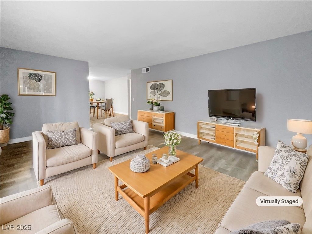 Beautiful First-Floor 2-Bedroom, 2-Bath Condo in a Prime Las Vegas Location! This charming first-floor condo offers exceptional convenience?just minutes from the world-famous Las Vegas Strip, Las Vegas Country Club, the Sphere, Downtown, and countless local amenities. Inside, you'll find stylish laminate wood flooring throughout, upgraded white cabinetry, and quartz countertops that give the kitchen a fresh, modern feel. The home features black appliances, neutral designer paint, and updated bathroom sinks, creating a clean and contemporary look from top to bottom. This one is truly turnkey and move-in ready. Plus?HOA dues include water, sewer, and trash!