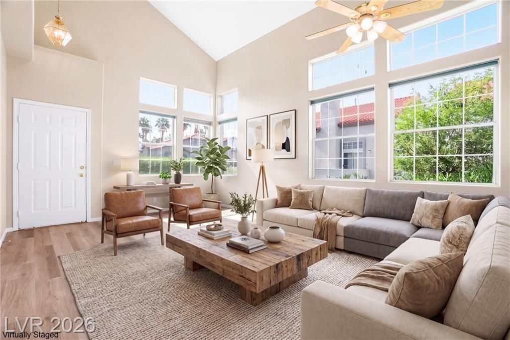 Discover this charming 1,476 sq. ft. 2-story home nestled in the heart of Green Valley, offering the perfect blend of comfort, style, and convenience. With 3 spacious bedrooms and 3 baths, this residence features an open floorplan enhanced by vaulted ceilings that create a bright, airy atmosphere throughout the main living areas. The well-designed layout includes a 2-car garage and sits within a beautifully maintained gated community. Residents enjoy access to exceptional amenities, including a sparkling community pool and spa, a fully equipped fitness room, park and an inviting clubhouse ideal for gatherings or relaxation. Located just minutes from the 215 freeway, Green Valley Ranch, The District, Legacy Golf Course, Sprouts, Whole Foods, Smiths, Petco, top-rated schools, shopping, dining, and entertainment, this home places you at the center of everything Green Valley has to offer. Whether you're seeking convenience, community, or comfort, this property delivers it all.