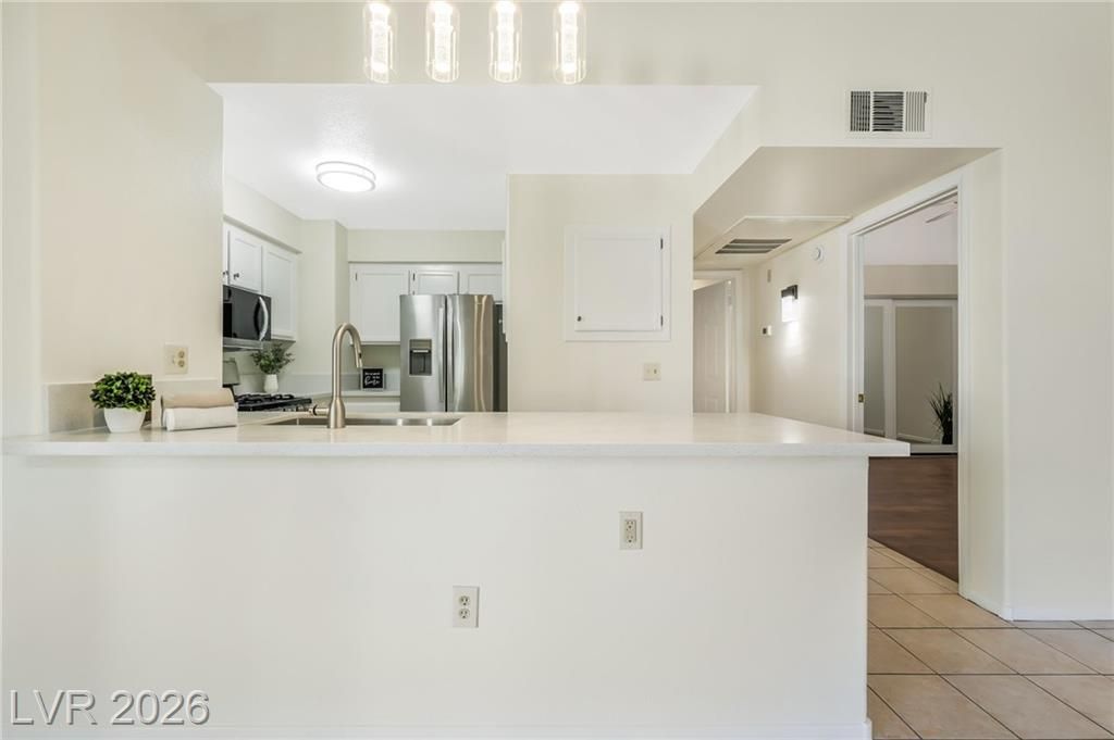 Beautifully updated 2-bedroom, 2-bath condo in the heart of Green Valley with pool views and a one-car detached garage! This move-in ready home features fresh paint throughout, tile flooring in the main living spaces, and laminate flooring in the bedrooms. The remodeled kitchen boasts quartz countertops, stainless steel appliances, and modern finishes, creating a stylish and functional space. The spacious living room is highlighted by a cozy fireplace, perfect for relaxing evenings. Step outside and enjoy direct views of the community pool, giving the home a peaceful, resort-style atmosphere. Conveniently located near top shopping, dining, parks, and easy freeway access, this Green Valley condo is a fantastic opportunity for comfortable living in one of Henderson's most sought-after areas.