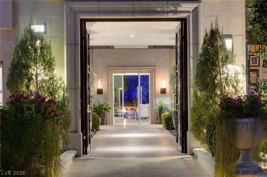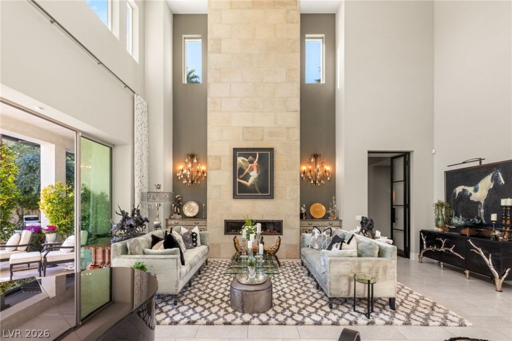 Some homes are impressive. A few are historic. 2323 Pinto Lane is both. Privately positioned at the end of a cul-de-sac on legendary Pinto Lane. The sense of arrival begins immediately?circular drive, mature grounds, and a grand 24-foot entry foyer. The scale is undeniable, yet the home feels intentional rather than overwhelming. Expansive living spaces with soaring ceilings allow for both formal entertaining and comfortable everyday living. The chef's kitchen was designed to host at scale while still functioning beautifully for daily use. The primary retreat is its own private sanctuary, complete with separate spousal quarters, a spa-inspired bath, offering a quiet escape within the estate itself. Outdoors, the property transforms into a private compound. A resort-style pool and spa, multiple covered patios, equestrian facilities with horse stalls and riding arena, and expansive grounds create a rare opportunity to live expansively in the heart of Las Vegas.