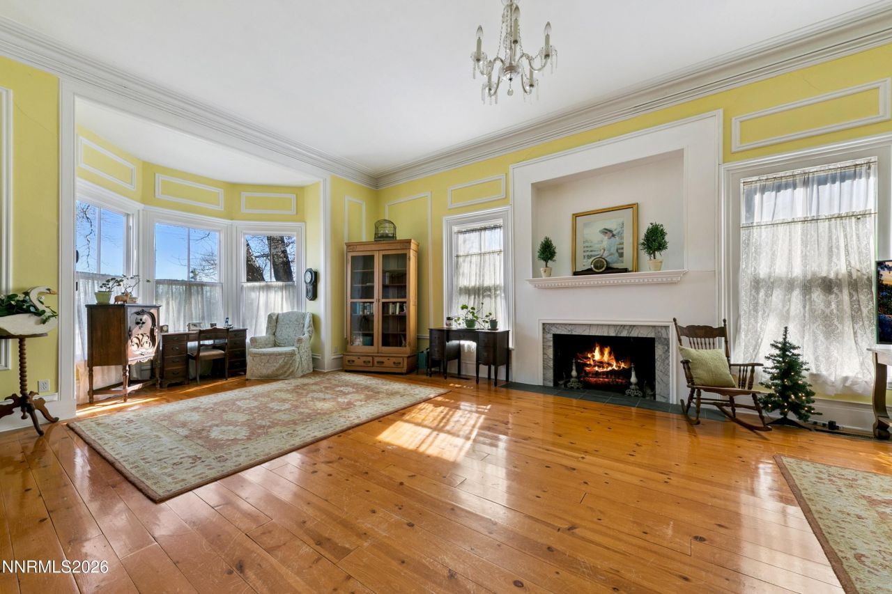 Beautiful Historic property situated on 4.7 acres, this property offers incredible flexibility for multi-generational living. Just a short walk to downtown Genoa and minutes from Lake Tahoe, this once-in-a-lifetime estate is truly one of a kind. The main residence features soaring cathedral ceilings, crown molding, wood floors, and multiple fireplaces, including a marble wood-burning fireplace with sweeping views of the Carson Valley. The kitchen showcases exposed wood beams, a large island, modern appliances, and an original 1800s wood stove. Outdoor living includes an enclosed brick patio with breathtaking Sierra Nevada Mountain views, plus a paver-lined courtyard leading to a fully equipped guesthouse. Additional highlights include a preserved stone washroom, in-law quarters with a full kitchen and bath, and a spacious four-car garage or shop, plus it is zoned for horses. A rare opportunity to own a true one-of-one property in historic Genoa, Nevada. Built in 1860, this beautifully restored Victorian-style home was once owned by Senator James Wallace Haines and blends rich history with modern updates throughout.