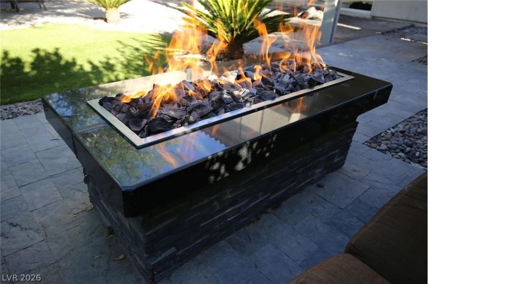 This home is newly updated, fresh appliances, newer garage door opener (quiet/wifi operated with battery backup). All bathrooms are redone with (designer fixtures throughout). The backyard is an oasis! You will forget you are in Vegas with privacy hedges and a resort-style natural gas firepit. Ductless AC unit for comfort, zone cooling and great efficiency. Downstairs flooring is hardwood and ceramic tile for easy cleaning, and upstairs is carpeted.