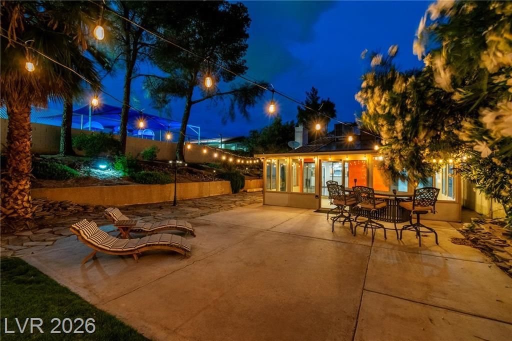 This beautifully designed home offers an exceptional flow with generously sized bedrooms throughout. The large primary suite features a private ensuite, huge walk-in closet, & direct access to a serene, private & oversized backyard with nearly 10,000 sq ft of landscaped outdoor living space, perfect for entertaining or accommodating your extended canine family. The secondary bedrooms are thoughtfully positioned for optimal separation and privacy. A climate-controlled four-season room adds usable space & can be used as a family/game room, den, studio, or workshop. Tucked away in a secluded and tranquil community that is centrally located close to everything, Las Vegas & has tree-lined, wide streets, lush greenbelts, and charming cobblestone driveways. Residents will enjoy resort-style amenities, including a pool, clubhouse, tennis/pickleball court, and free secured RV parking. Upgrades include a new water heater, a new garage door opener, and an HVAC system less than five years old.