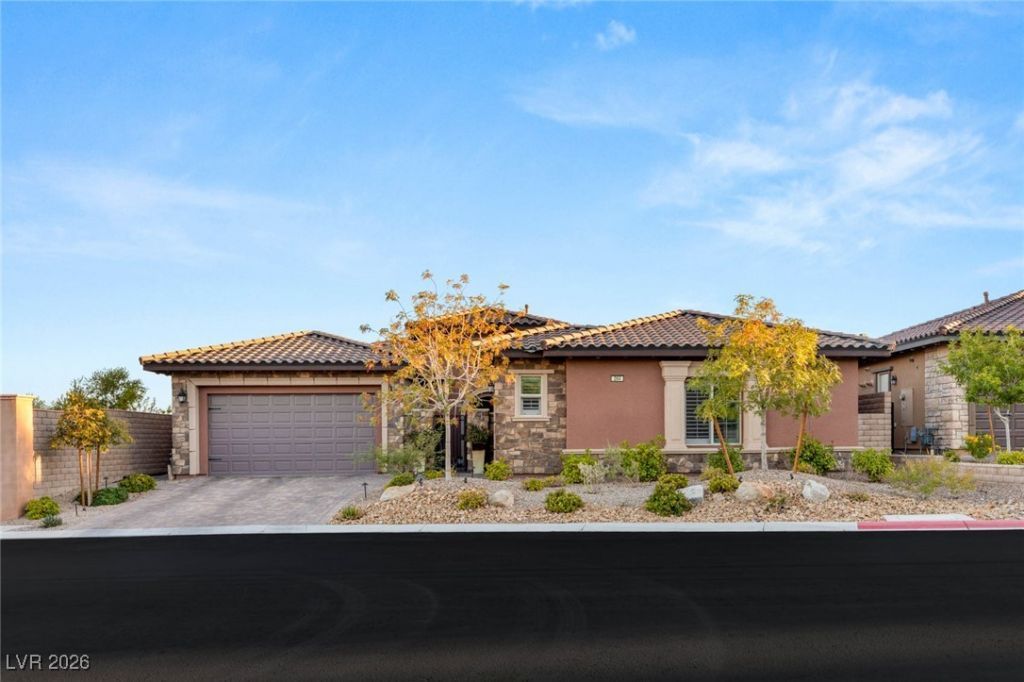 Step into refined contemporary living at 264 Tarragona Breeze Ave, a single-story luxury home in one of Summerlin's most sought-after enclaves. From the gated courtyard entry and paver driveway to the private, tranquil backyard, this home blends modern design with everyday functionality. The open floor plan is filled with natural light, high ceilings, and elegant finishes. The chef's kitchen features an oversized island, premium stainless steel appliances, abundant cabinetry, and a spacious walk-in pantry, flowing seamlessly into the great room anchored by a sleek linear fireplace with stone accent wall. Offering four bedrooms and five bathrooms, the primary suite is a private retreat with stacking sliders to the pool, spa-like bath with soaking tub, oversized shower, dual vanities, and a custom walk-in closet with direct laundry access. Additional highlights include a formal dining room, plantation shutters, designer lighting, and a 3-car garage with epoxy floors and built-in storage
