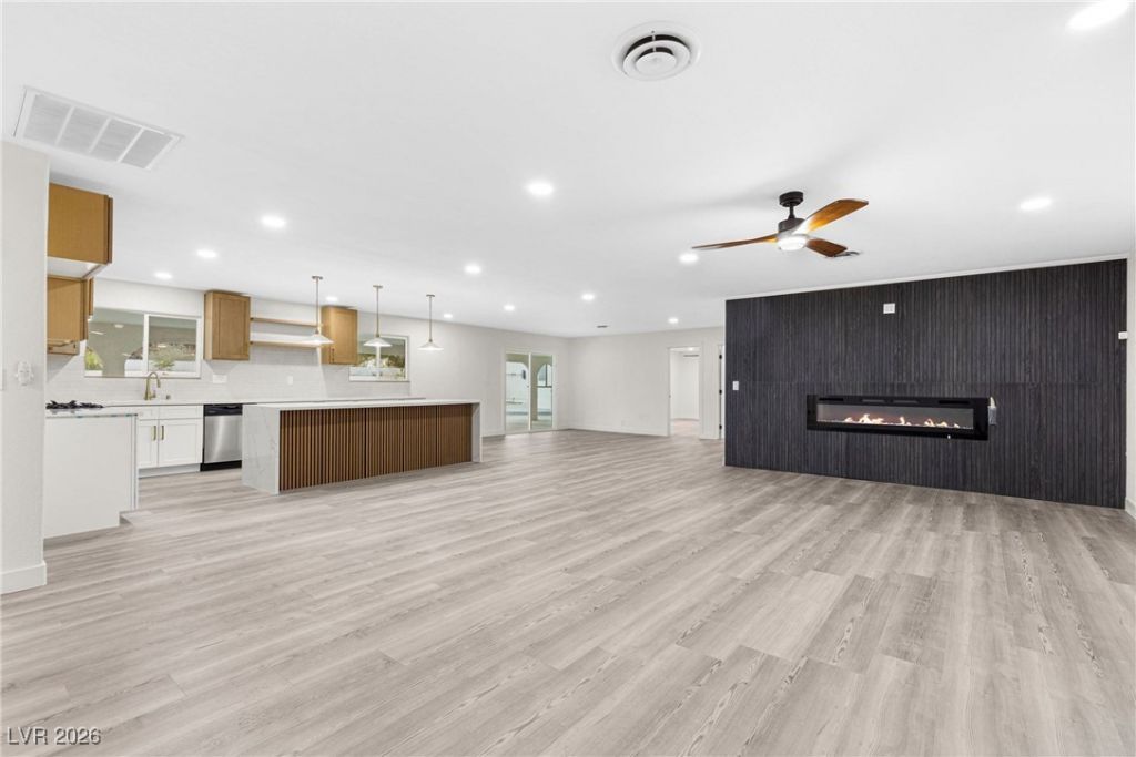 Completely remodeled single-story home with a sparkling pool and fully renovated casita. No expense was spared in transforming this property into a modern retreat. A spacious circular driveway and large covered detached carport provide ample parking. Inside, expansive open-concept living areas feature a sleek accent fireplace and oversized rooms offering flexible living options. The brand-new kitchen showcases a large island with generous workspace and seating, along with updated cabinetry and modern finishes. All bathrooms have been fully remodeled throughout the home. The backyard is an entertainer's dream with a huge covered patio, built-in grill and bar area, and refreshing pool. The remodeled casita includes a kitchenette, separate bedroom, and its own private garage. A truly exceptional property and a must-see!