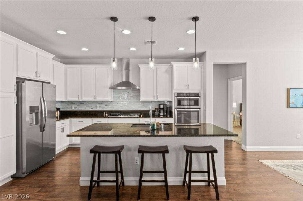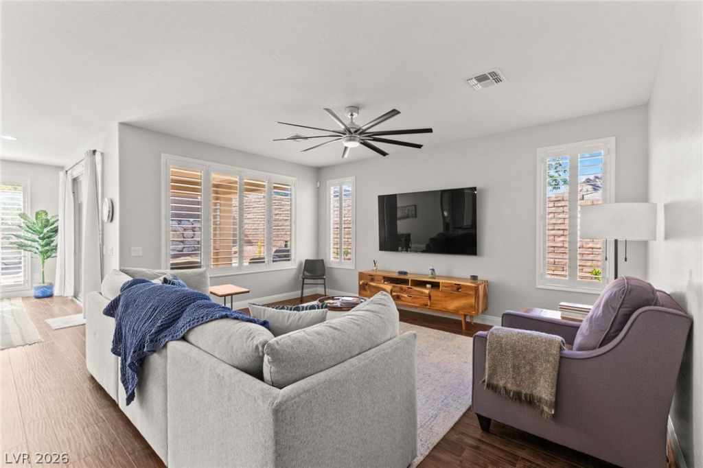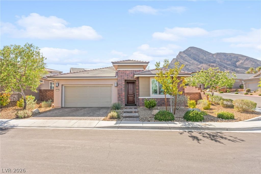 Located on the edge of Red Rock Canyon in the prestigious, gated Reverence Village of Summerlin, this immaculately maintained single-story home offers modern desert living with stunning mountain views. The open-concept layout flows seamlessly between the living, dining, and kitchen areas, ideal for everyday living and entertaining. This home features 3 bedrooms (one is a flex space conversion with a Murphy bed and cabinets), 2 bathrooms, and a 2-car garage. Interior highlights include shutters throughout, neutral paint, and luxury vinyl flooring. The kitchen offers a large center island, granite countertops, and built-in cooktop, oven, and microwave. The primary suite is a relaxing retreat and includes a spacious walk-in closet, and oversized walk-in shower. Enjoy a low-maintenance desert-landscaped backyard with a covered patio. The gated Reverence community features walking trails, an eight-acre park, and resort-style amenities near Red Rock Canyon. Schedule your showing today!
