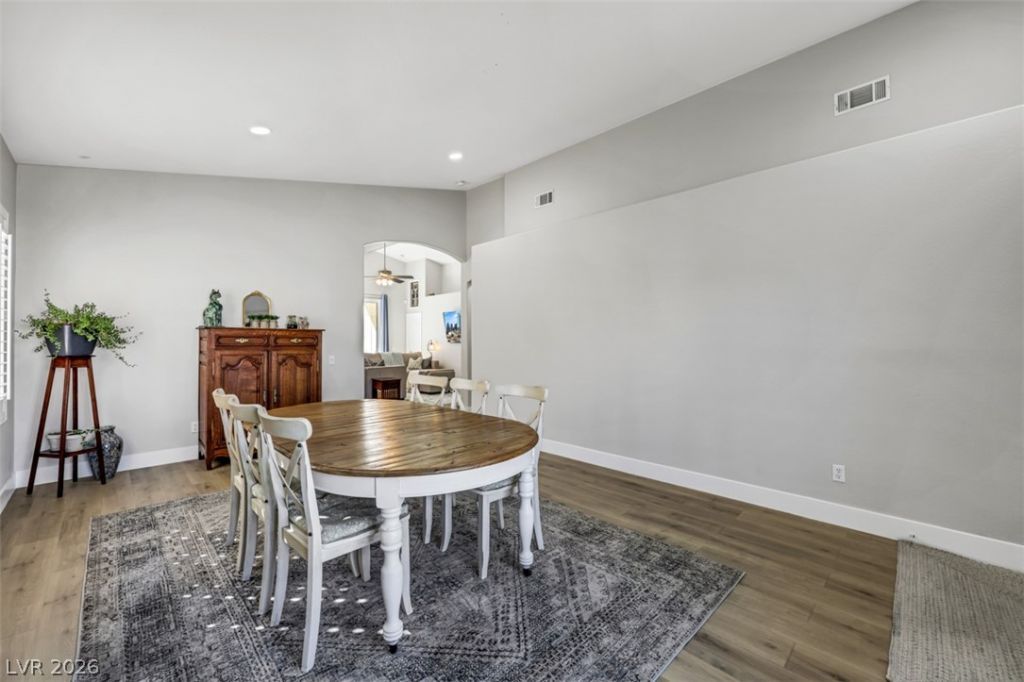 Fully owned paid off solar (Oct 2021), a heated pool, whole-home water filtration, reverse osmosis, and sun-blocking screens set this Desert Shores single-story apart?delivering luxury with lasting efficiency and no lease obligations. Energy savings, purified water throughout, and enhanced privacy create comfort you can feel every day. Inside, soaring ceilings and wide-plank flooring frame a light-filled, open layout designed for modern living. The remodeled kitchen shines with white cabinetry, granite countertops, and stainless steel appliances?ideal for gatherings or quiet evenings at home. The serene primary suite features vaulted ceilings and a spa-inspired bath with dual vanities and a walk-in shower. Out back, your private retreat awaits: a heated pool and covered patio for year-round enjoyment. All within Desert Shores?five lakes, scenic paths, swans, and a private beach lagoon?just minutes from Summerlin dining and shopping. Luxury, efficiency, lifestyle?beautifully combined!