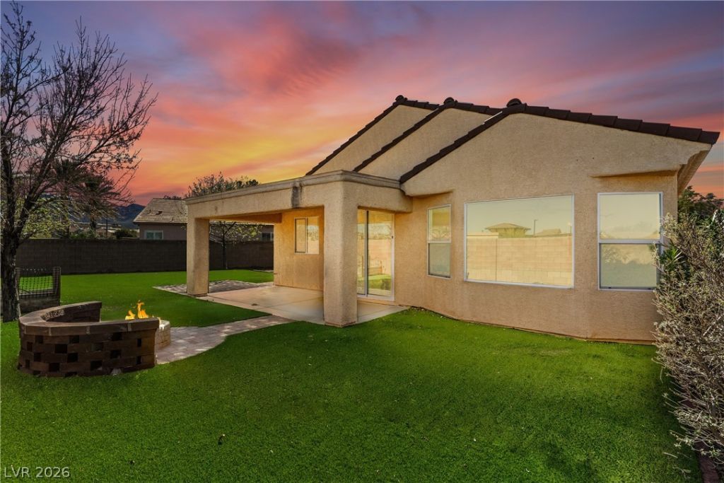 Discover the charm of Anthem Highlands with its beautiful tree-lined streets and inviting neighborhood feel. Stunning single-story home built by Pulte Homes offers 3 bedrooms and 2 full baths with fresh interior paint and an open, bright layout . The spacious living room is ideal for everyday living or entertaining. The kitchen features stainless steel appliances, expansive counter space, and a pantry for added storage. The primary suite includes upgraded flooring, ceiling fan, and an ensuite bath with dual vanities, a large soaking tub, separate walk-in shower, and a walk-in closet with an organization system. Secondary bedrooms feature new carpet, and bathroom tub surrounds have been refreshed. A laundry room with storage shelf adds convenience. Enjoy a pool-size backyard with water-smart artificial turf, covered patio, fire pit with built-in bench, and low-maintenance xeriscape landscaping. Located minutes from parks, dining, shopping, and everyday amenities.