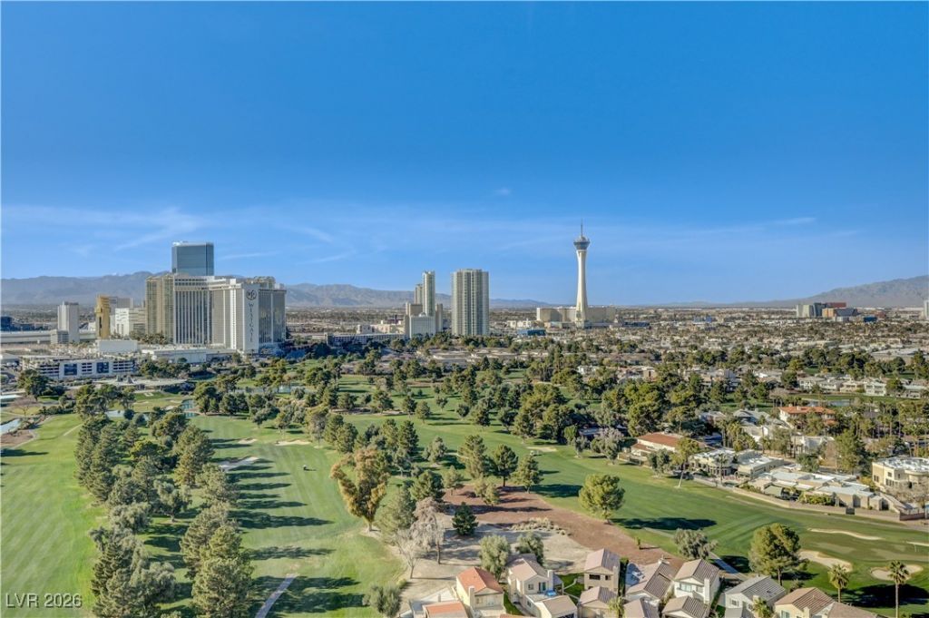 Own a piece of Las Vegas history at Regency Towers, nestled within the prestigious Las Vegas Country Club Estates. Perched on the 26th floor, this corner unit boasts breathtaking, panoramic views of the iconic Strip, serene mountains, and verdant golf fairways. Unwind with stunning sunsets from the expansive wrap-around balcony, or take peaceful strolls along the meticulously landscaped streets of this exclusive, guard-gated community, all while remaining just moments from the vibrant energy of the city. Regency Towers offers a lifestyle of luxury and convenience. Enjoy the services of a dedicated concierge, valet parking, and secure garage access, all supported by an attentive on-site team. Stay active in the fully equipped fitness center or on the tennis court, and experience elevated living in one of Las Vegas' most coveted addresses.