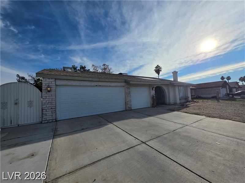 Welcome to this NO HOA ranch-style home offering an open-concept layout and desirable single-story living in the Las Vegas area. The spacious front living room features vaulted ceilings and a classic brick fireplace, creating a warm and inviting atmosphere. The kitchen provides generous counter and cooking space, including a large breakfast bar overlooking the family room, which is anchored by a second brick fireplace?ideal for entertaining and everyday living. This home includes 3 bedrooms, 2 bathrooms, and a 3-car garage with brand-new garage doors. Recent upgrades include fresh interior paint and new luxury vinyl plank flooring throughout. Additional highlights include RV parking, a functional floor plan, and the freedom of no HOA restrictions?a rare find for buyers seeking flexibility and space. Conveniently located near shopping, dining, and major roadways, this property offers comfort, practicality, and long-term value.