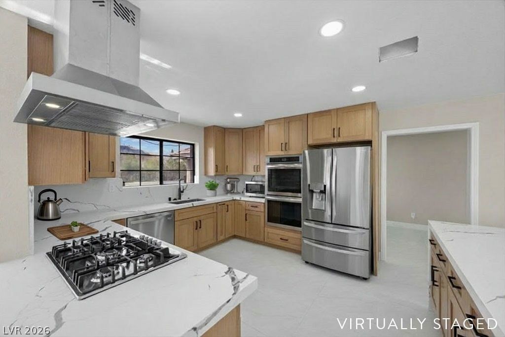 Stunningly Updated and Renovated! Spacious 5-Bedroom Home on Over ¼ Acre with Pool, Sports Court and NO HOA! This property offers space and style! Enjoy two oversized living areas, each with its own fireplace- one featuring a built-in bar, the other with custom built-in shelving, perfect for entertaining or relaxing. A convenient downstairs bedroom with a ¾ bath and separate backyard access provides ideal guest or multi-generational living. Upstairs, discover custom built-in shelving and private balcony with a peek-a-boo Strip view! The expansive primary suite features two private entry points to the ensuite, dual walk-in closets, a soaking tub, and a separate shower. Additional highlights include brand new epoxy flooring in the 3-car attached garage with backyard access PLUS a host of upgrades: newer A/C and heat, newer pool pump, and brand new pebble-tech pool! Don't miss your chance to own this one-of-a-kind property!