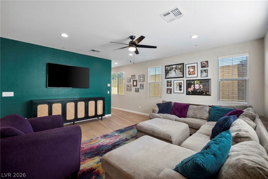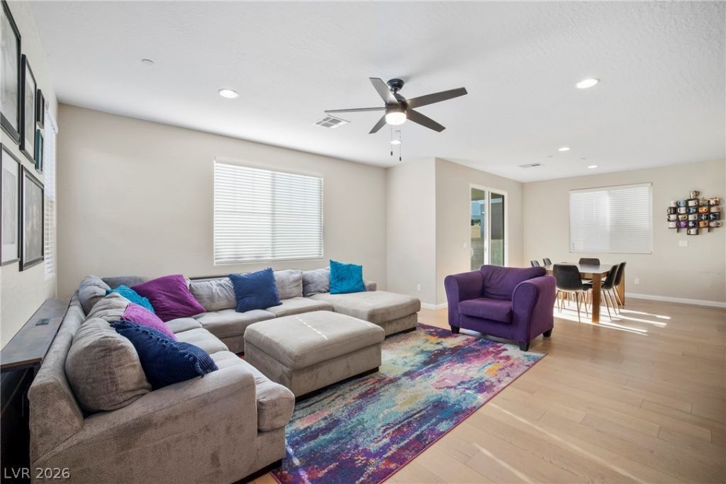 Rare corner lot in the highly sought-after Cadence community in Henderson, NV with no rear neighbors for added privacy! This beautifully designed 2,051 sq ft home features 3 bedrooms plus a huge loft, perfect for a home office, media room, or flex space. The open-concept great room flows seamlessly into a chef-inspired kitchen with quartz countertops, stainless steel appliances, shaker cabinetry, and a large island with bar-top seating. Separate dining area ideal for entertaining. Spacious secondary bedrooms, upstairs laundry, and energy-efficient tankless water heater. Enjoy low-maintenance desert landscaping, synthetic turf, and a covered patio for year-round outdoor living. Cadence offers resort-style amenities including a sparkling community pool & spa, pickleball courts, parks, playgrounds, scenic walking/jogging trails, and expansive green space ? all minutes from popular schools, shopping, dining, and easy freeway access. Modern living, prime location, exceptional lifestyle!