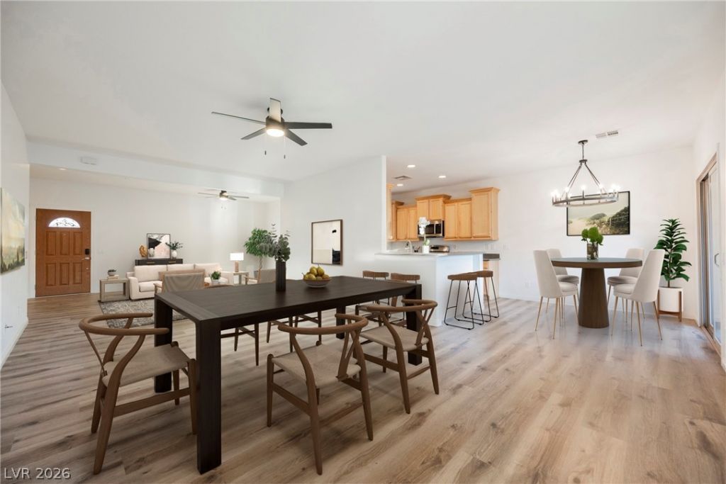Refreshed Stallion Mountain Single Story w/paid off solar! This home has all appliances, stainless in the kitchen! Fresh paint, flooring and carpet! Large owner's suite with walk in shower, two generous additional bedrooms, and huge open living room! Schedule your private viewing today!