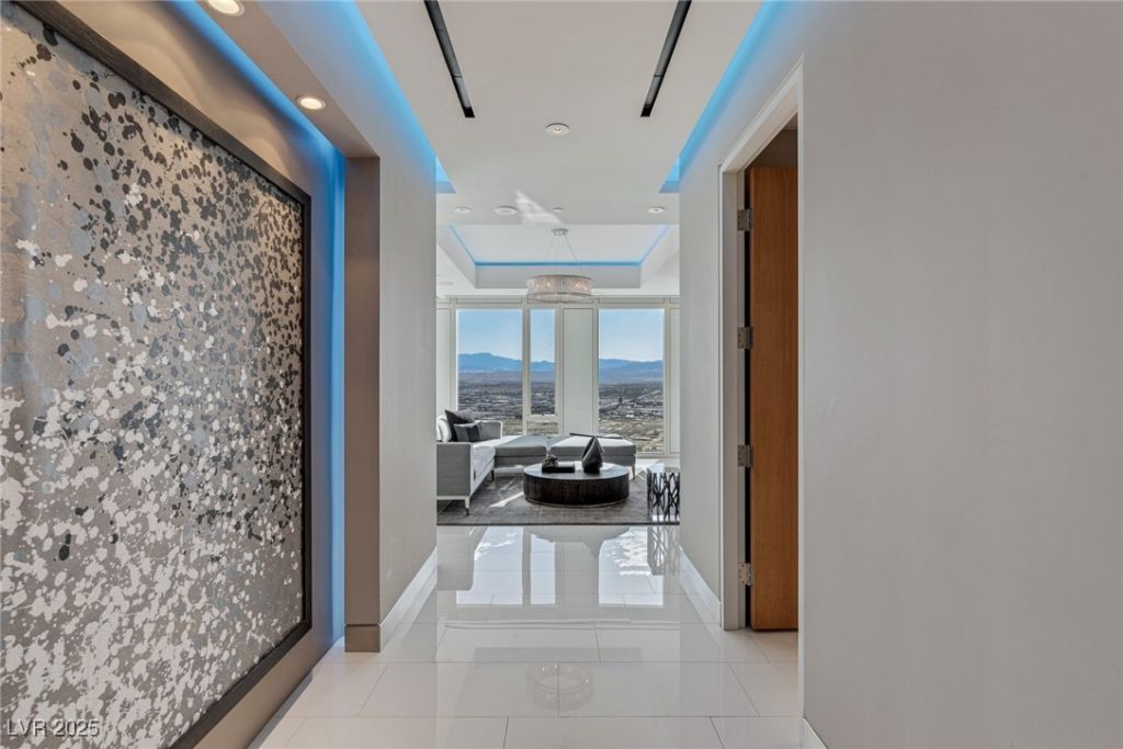 If only the best will do, this is your Penthouse!! A world class residence with the most iconic address on the Las Vegas Strip. Custom built from grey shell features breathtaking views of the West Valley, South Strip and new Allegiant Stadium! Luxurious features include a disappearing glass wall that creates a private 2nd bedroom, a 36-color indirect lighting system, wireless shades, flush stainless steel baseboards with Fry Reglet reveal and a sophisticated home automation system that controls lights, blinds, temperature, audio and video. Residents of the Waldorf Astoria enjoy their own private elevators, concierge and owner valet parking while benefiting from access to the 5-star hotel spa, resort pool, tea lounge, 24-hour in-room dining, 24-hour building security, world-class building staff, restaurants, fitness center and yoga room. Located in CityCenter, you're walking distance to world-class shopping, fine dining, gaming, entertainment and the event filled T-Mobile Arena.