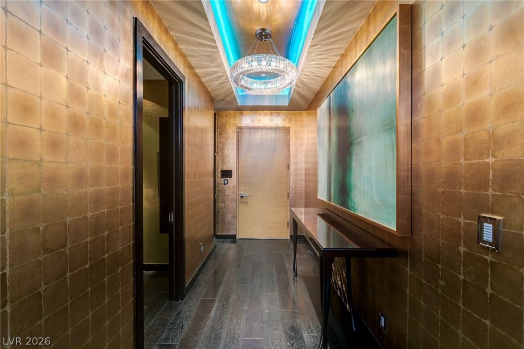 Luxurious Waldorf Astoria Custom built Penthouse. Exquisite Top of the Line Finishes and Interior Design with Furnishings by Celebrity Designer Christopher Guy. One of a kind Gourmet Kitchen w/Custom Quartzite Counter Tops & Illuminated Onyx Island, 250 Bottle Wine Fridge, Zebra Wood Artisan Ebony Cabinetry, Bali Bali Hardware, Grohe Fixtures, Wolf Appliances and so much more! A must See! Residents enjoy world-class amenities: on-site concierge, gourmet dining, private valet, yoga studio, fitness center, boardroom, resort pool, and a renowned spa. Just steps from elite shopping, fine dining, acclaimed art galleries, live entertainment, and the T-Mobile Arena, this is a rare opportunity to own a meticulously curated residence in the heart of the legendary Las Vegas Strip.