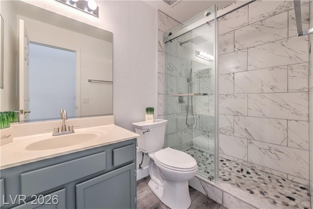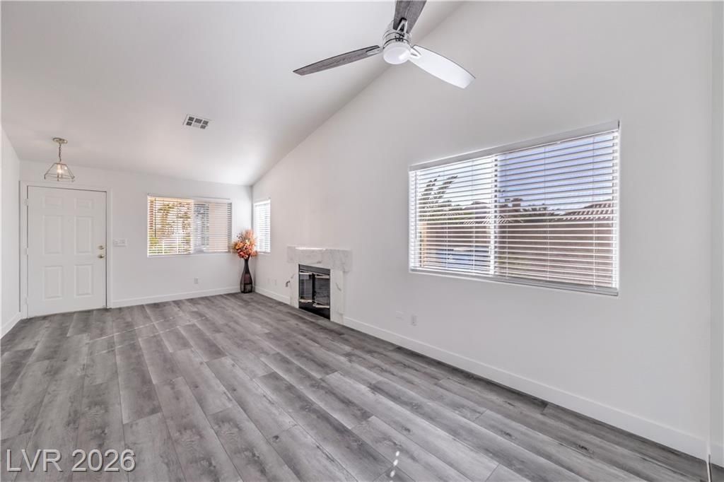 Discover a beautifully remodeled single-story home in the gated Tamarac community in Southwest area. Seller is offering $5,000 to buyer closing cost! This 3-bedroom 2 bathroom residence 2 car garage and exceptionally low HOA fee, offers a truly turn-key experience. Step inside to an open-concept layout featuring vaulted ceilings a cozy gas fireplace, and new luxury vinyl plank flooring throughout. The home boasts extensive upgrades including fresh paint, brand new appliances, and modern bathroom fixtures ensuring contemporary feel. The spacious master suite offers a luxurious, never-used walk-in shower. A generous backyard awaits perfect for entertaining with its large patio and charming stone seating area. Ideally situated in the vibrant Southwest areab just minutes away from shopping, dining, and entertainment including Downtown Summerlin the Las Vegas Strip, and convenient freeway access. This exceptional property attracts significant interest. Don't miss your chance to view it!