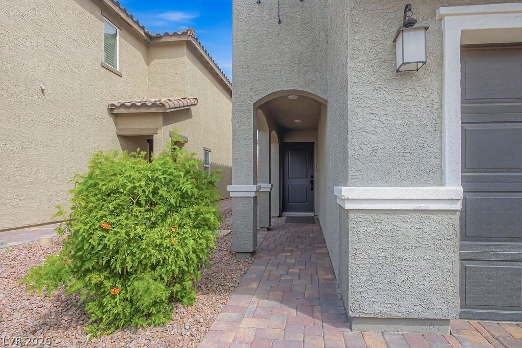 Modern 2-story home built in 2022 with 5 bedrooms, 3 bathrooms, and 2,476 sq ft. Open-concept layout seamlessly connects the kitchen, dining, and living areas. The kitchen features stainless steel appliances, quartz countertops, a large island, and a walk-in pantry. Enjoy added efficiency and comfort with a tankless water heater and water softener system. A main-level bedroom offers flexible use for guests or a home office. The low-maintenance backyard is designed for easy upkeep. Located in a gated community in Southwest Las Vegas with convenient access to Blue Diamond Rd (NV-160) and the I-15 freeway, just minutes from the Las Vegas Strip. Nearby shopping, dining, and outdoor recreation include Exploration Peak Park (??1.0 mi) and Mountain's Edge Regional Park (??1.5 mi). Schedule a showing to view this property.
