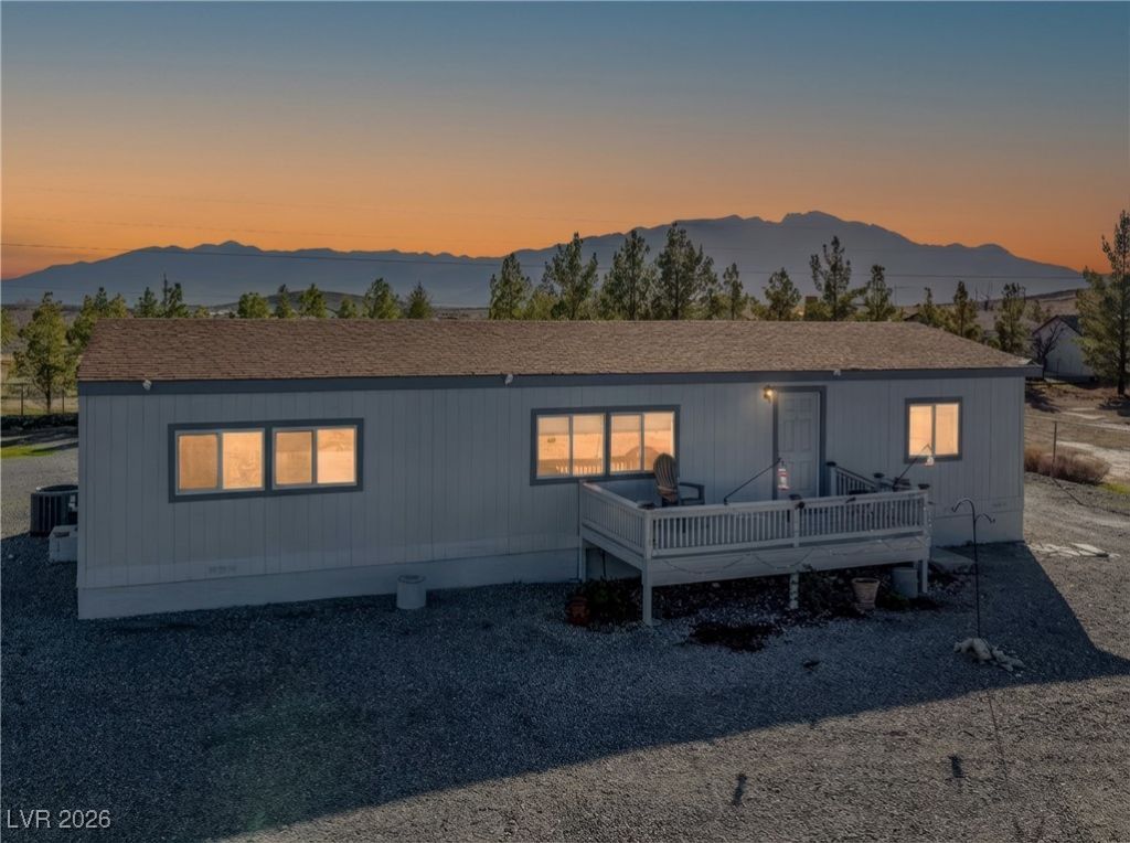 Beautifully remodeled manufactured double-wide home on almost an acre, fenced with chain-link for privacy and pets, with private well and septic. Bright, open living spaces feature lovely vinyl plank flooring through the main areas and cozy carpet in the bedrooms. The split floorplan offers 3 bedrooms and 2 full baths, with a generous sized living area and dining area. The kitchen shines with quartz countertops, stainless appliances, and plenty of cabinetry for organization. Enjoy morning coffee on the front deck or unwind in the back yard that boasts mountains in every direction. A 10Ã?20 storage shed handles tools and outdoor gear, and motion senser lights surround the home and shed. The property captures spectacular back yard western-range sunsets that paint the sky, making the acreage feel like a private retreat while still being low-maintenance and move-in ready. This home blends modern finishes with practical comforts?ideal for anyone seeking space, views, and easy living.